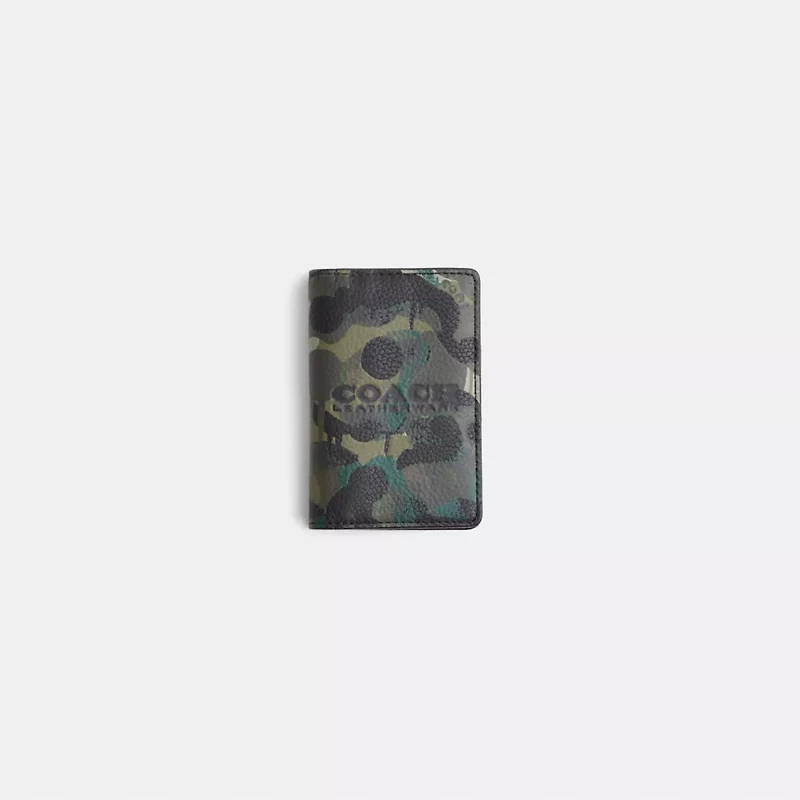 A little (re)love goes a long way. Sourced from the shelves of our Coach Repair Workshop, this Card Wallet was lovingly restored to its original condition by our talented craftspeople. Keeping waste out of landfills and reducing our impact on the environment is all part of our commitment to doing better for the planet (and all of us). A feel-good find, it’s your chance to get one of our most-loved styles if you missed out the first time. Wear it, love it, pass it on.Crafted of polished pebble leather featuring our graffiti-inspired Camo print and a Signature canvas interior, this slim bifold design functions as a minimalist wallet. It organizes four cards and is finished with a convenient outside slip pocket for cash or receipts.