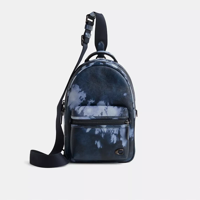 A little (re)love goes a long way. This Charter Pack is a gently worn design restored to its original condition by the talented craftspeople at our Coach Repair Workshop. Passed along from members of the Coach community like you, it helps to keep bags out of landfills and reduces our impact on the environment—part of our commitment to doing better for the planet (and all of us). A feel-good find, it’s your chance to get one of our most-loved styles if you missed out the first time. Wear it, love it, pass it on.For adventures near and far, our Charter is designed to make every journey, commute and errand feel like a first-class experience. A slender alternative to a backpack, this streamlined Pack is a sporty hands-free design with room for the largest size phone or iPad, pockets inside and out for easy organization and lightweight spacer mesh backing. Crafted of pebble leather printed with our sophisticated spin on a classic tie-dye pattern and detailed with our Signature hardware, clip it left side or right side to wear slung on the shoulder or crossbody.