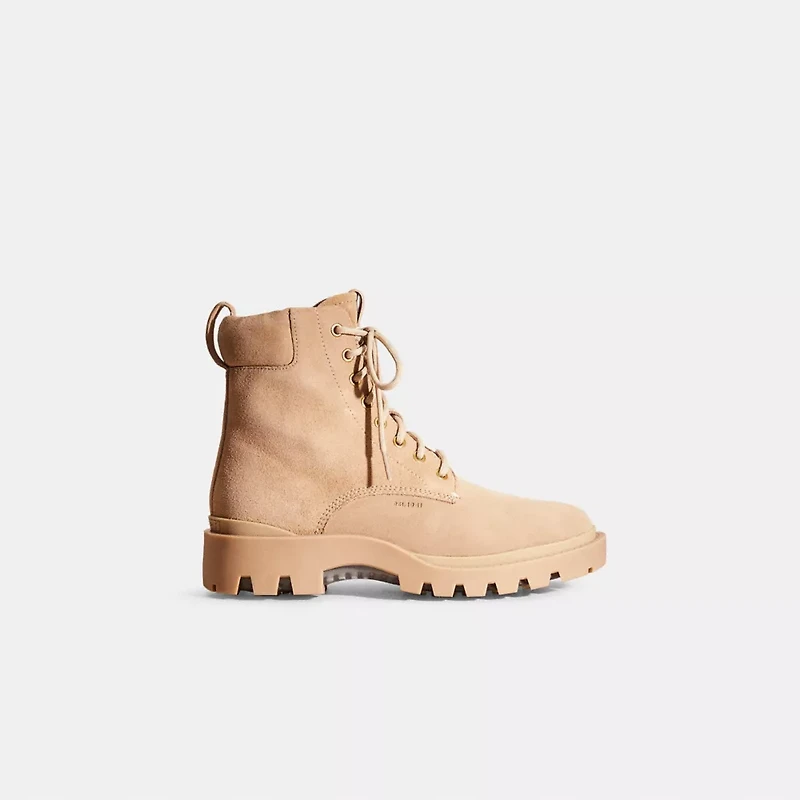 A little (re)love goes a long way. Sourced from the shelves of our Coach Repair Workshop, this pair of boots was lovingly restored to its original condition by our talented craftspeople. Keeping waste out of landfills and reducing our impact on the environment is all part of our commitment to doing better for the planet (and all of us). A feel-good find, it’s your chance to get one of our most-loved styles if you missed out the first time.Go the extra mile in our rugged lace-up Boot made with proprietary Coach CitySole technology for maximum comfort and flexibility. Inspired by vintage workwear styles, it sits at the intersection of fashion and function. The buffed suede design features a Coach TPU for maximum stability, a padded back collar and a layer of shock-absorbing cushioned pods that provide all-day support. It’s finished with a lug sole for superior movement and traction. Your feet will thank you.