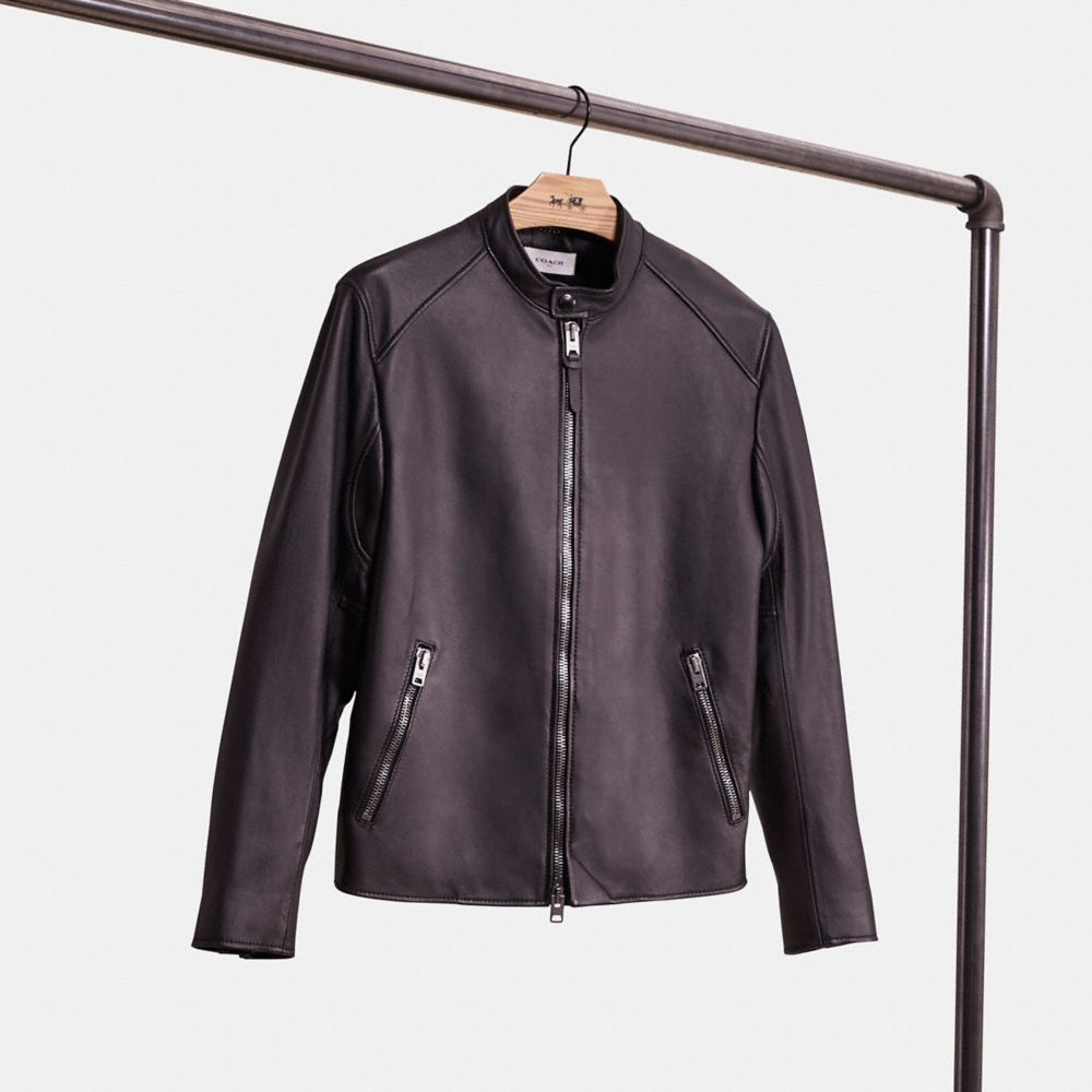 A little (re)love goes a long way. Sourced from the shelves of our Coach Repair Workshop, this jacket was lovingly restored to its original condition by our talented craftspeople. Keeping waste out of landfills and reducing our impact on the environment is all part of our commitment to doing better for the planet (and all of us). A feel-good find, it’s your chance to get one of our most-loved styles if you missed out the first time. Wear it, love it, pass it on.Crafted of smooth, buttery leather, this minimalist jacket is inspired by biker culture—a symbol of authentic American cool. Its medium weight and satiny lining make it a great piece to transition through the seasons.