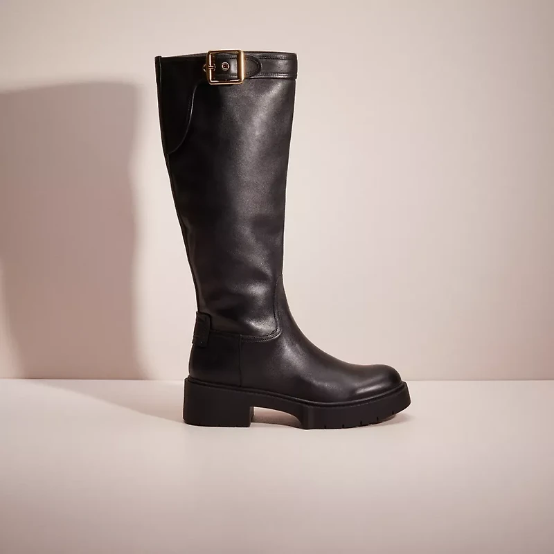 A little (re)love goes a long way. Sourced from the shelves of our Coach Repair Workshop, this pair of boots was lovingly restored to its original condition by our talented craftspeople. Keeping waste out of landfills and reducing our impact on the environment is all part of our commitment to doing better for the planet (and all of us). A feel-good find, it’s your chance to get one of our most-loved styles if you missed out the first time.Crafted of smooth leather, out Lilli is a moto-inspired tall boot with a rugged rubber sole for great traction.