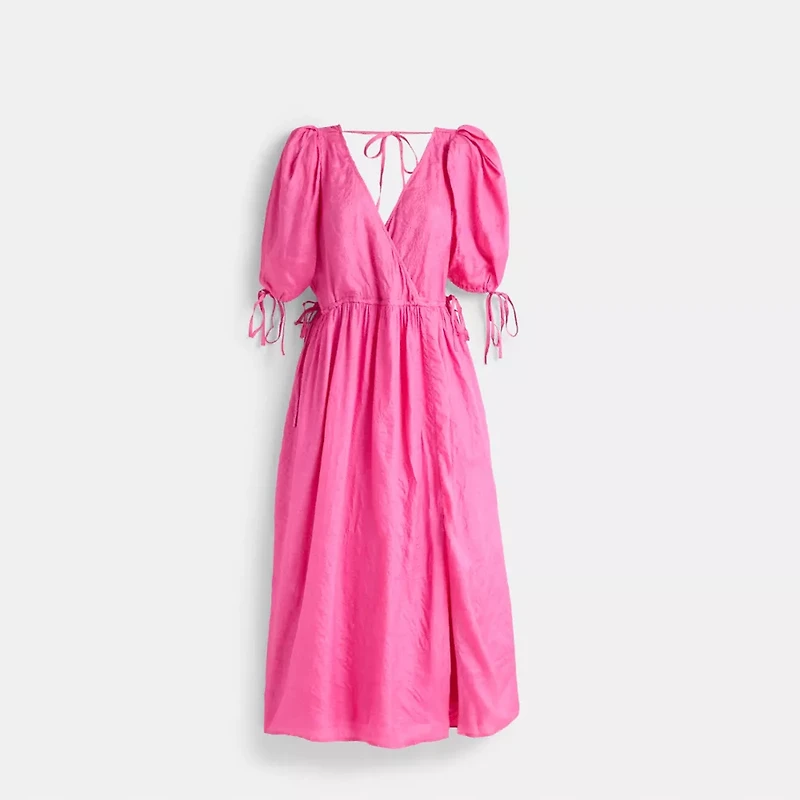 A little (re)love goes a long way. Sourced from the shelves of our Coach Repair Workshop, this dress was lovingly restored to its original condition by our talented craftspeople. Keeping waste out of landfills and reducing our impact on the environment is all part of our commitment to doing better for the planet (and all of us). A feel-good find, it’s your chance to get one of our most-loved styles if you missed out the first time. Wear it, love it, pass it on.An easy toss-on and step-out style, this breezy crinkled silk midi dress is detailed with adjustable ties at the back, sleeves and waist. Featuring puff sleeves for a bit of volume and slip pockets, the V-neck design is finished with a removable slip.