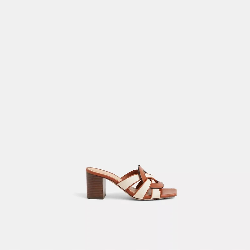 A little (re)love goes a long way. Sourced from the shelves of our Coach Repair Workshop, this pair of sandals was lovingly restored to its original condition by our talented craftspeople. Keeping waste out of landfills and reducing our impact on the environment is all part of our commitment to doing better for the planet (and all of us). A feel-good find, it’s your chance to get one of our most-loved styles if you missed out the first time.An elevated slip-on design to dress up or down, our Nikki sandal is crafted in a mix of smooth leather and textured canvas for a colorblock effect. Featuring our interlocking Signature and a stacked block heel, the sandal is finished with a comfortable padded footbed.