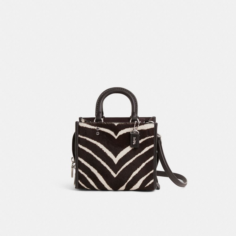 A little (re)love goes a long way. This Rogue 20 is a gently worn design restored to its original condition by the talented craftspeople at our Coach Repair Workshop. Passed along from members of the Coach community like you, it helps to keep bags out of landfills and reduces our impact on the environment—part of our commitment to doing better for the planet (and all of us). A feel-good find, it’s your chance to get one of our most-loved styles if you missed out the first time. Wear it, love it, pass it on.Inspired by free spirits, rebels and dreamers, the aptly named Rogue is a go-anywhere bag crafted of luxe silky haircalf featuring a graphic zebra print and our buttery soft glovetanned leather. The compact 20 features three organized compartments and detachable straps for shoulder or crossbody wear.