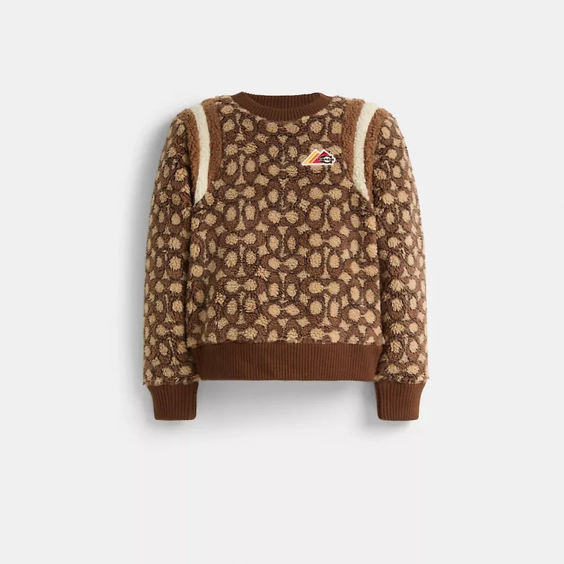 A little (re)love goes a long way. Sourced from the shelves of our Coach Repair Workshop, this crewneck was lovingly restored to its original condition by our talented craftspeople. Keeping waste out of landfills and reducing our impact on the environment is all part of our commitment to doing better for the planet (and all of us). A feel-good find, it’s your chance to get one of our most-loved styles if you missed out the first time. Wear it, love it, pass it on.Take cozy to the next level with our super soft Signature sherpa crewneck. The warm classic-fit style is finished with stripes at the shoulder, ribbed trim and our alpine-inspired Coach patch.