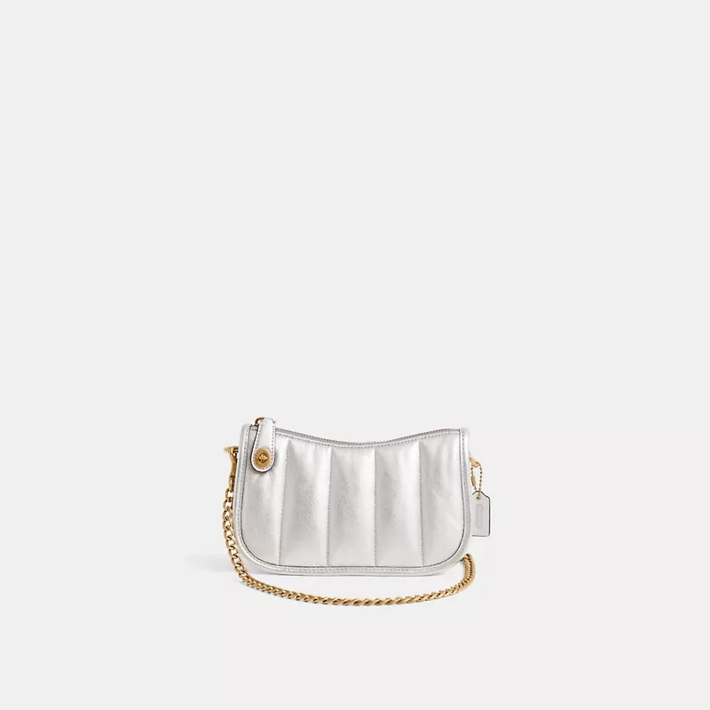 A little (re)love goes a long way. This Swinger 20 is a gently worn design restored to its original condition by the talented craftspeople at our Coach Repair Workshop. Passed along from members of the Coach community like you, it helps to keep bags out of landfills and reduces our impact on the environment—part of our commitment to doing better for the planet (and all of us). A feel-good find, it’s your chance to get one of our most-loved styles if you missed out the first time. Wear it, love it, pass it on.The streamlined Swinger 20 Bag is crafted of quilted metallic soft leather with a pearlized matte finish. Based on a 1980s Coach design reimagined for today, this petite bag features our iconic turnlock closure and sits just beneath the underarm with the short strap or it can be carried as a clutch.