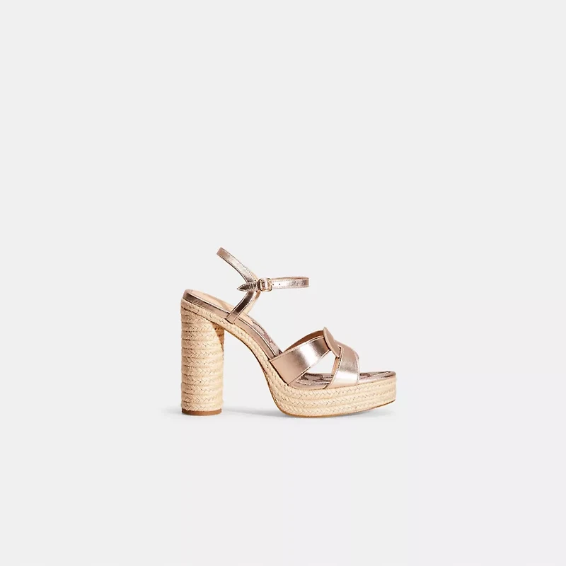 A little (re)love goes a long way. Sourced from the shelves of our Coach Repair Workshop, this pair of sandals was lovingly restored to its original condition by our talented craftspeople. Keeping waste out of landfills and reducing our impact on the environment is all part of our commitment to doing better for the planet (and all of us). A feel-good find, it’s your chance to get one of our most-loved styles if you missed out the first time.The Talina platform sandal features a twist on our iconic Signature at the interlocking straps. Crafted of high shine metallic leather, this ankle-strap style is detailed with woven jute trim and our Signature jacquard footbed.