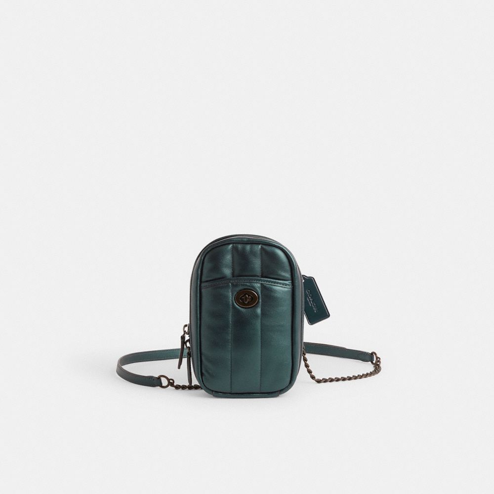 A little (re)love goes a long way. Sourced from the shelves of our Coach Repair Workshop, this Tall Camera Bag was lovingly restored to its original condition by our talented craftspeople. Keeping waste out of landfills and reducing our impact on the environment is all part of our commitment to doing better for the planet (and all of us). A feel-good find, it’s your chance to get one of our most-loved styles if you missed out the first time. Wear it, love it, pass it on.This compact Tall Camera Bag has all the functionality of one of our spacious wallets, including card slots, space for a phone and an exterior turnlock pocket. Crafted of quilted metallic soft leather with a pearlized matte finish, the go-everywhere design can be carried as a clutch, tossed in a bag or worn crossbody with the gleaming chain strap.