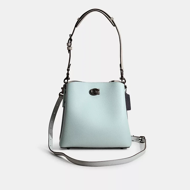 A little (re)love goes a long way. This Willow Bucket Bag is a gently worn design restored to its original condition by the talented craftspeople at our Coach Repair Workshop. Passed along from members of the Coach community like you, it helps to keep bags out of landfills and reduces our impact on the environment—part of our commitment to doing better for the planet (and all of us). A feel-good find, it’s your chance to get one of our most-loved styles if you missed out the first time. Wear it, love it, pass it on.Not too big, not too small, the Willow is crafted of colorblock polished pebble leather, it secures with our Signature turnlock and has an organized interior with one zip compartment, two open compartments and a pocket for small necessities.