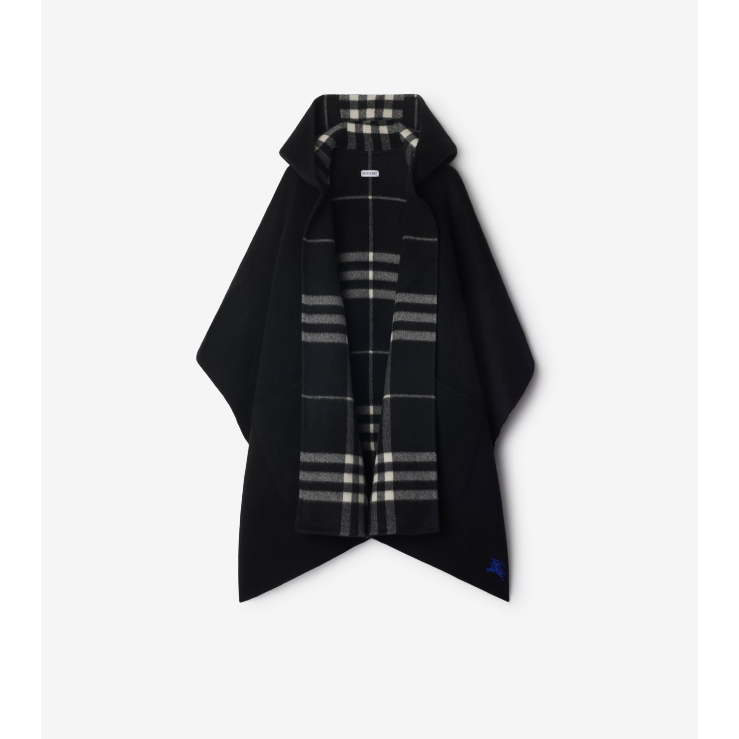 A hooded cashmere cape woven in Italy. The reversible design switches from Burberry Check to a solid colour and is embroidered with the Equestrian Knight Design. Part of Burberry Classics, wardrobe foundations with a unique Burberry slant. Side patch pockets Embroidered Equestrian Knight Design at hem