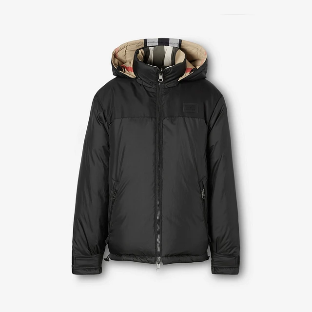Reversible Check Hooded Jacket in Black - Men, Nylon | Burberry® Official