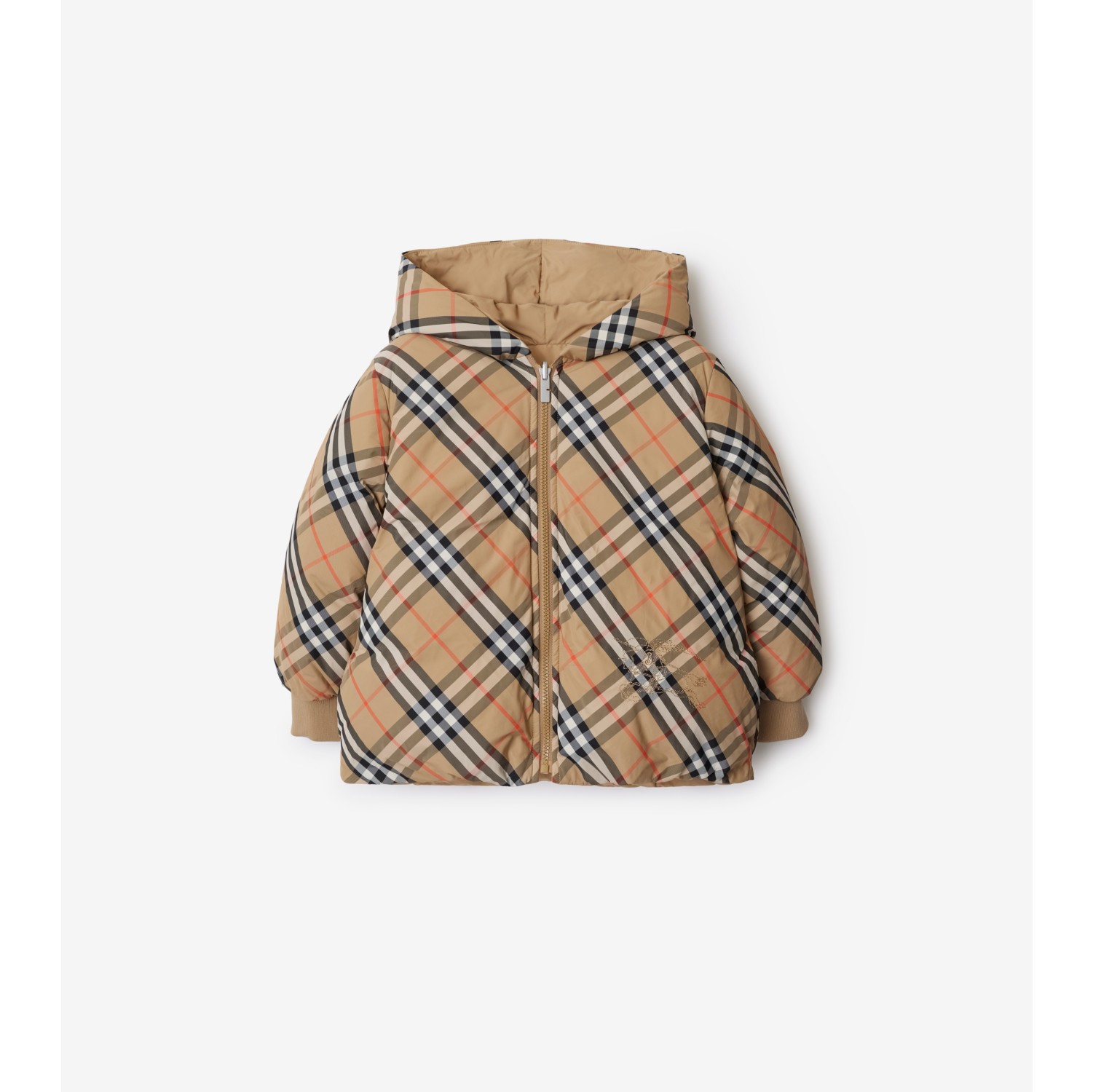 Reversible Check Nylon Puffer Jacket in Sand | Burberry® Official