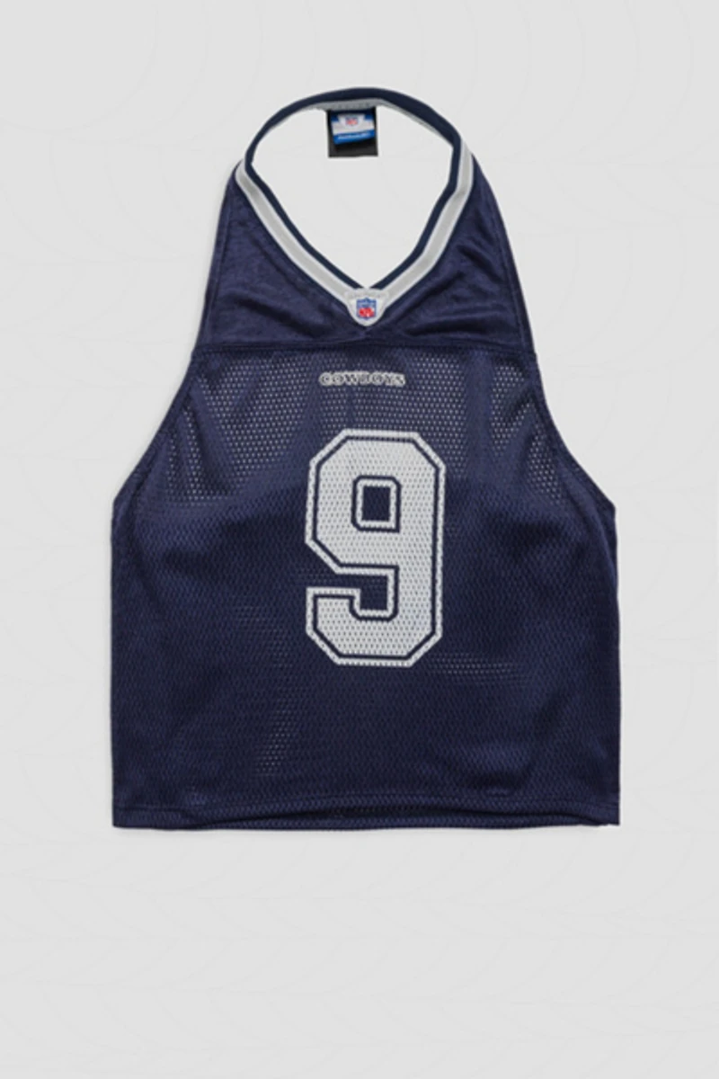 - NFL Tony Romo #9 halter top, Draped cowl back detail, Original v-neckline with raw edges