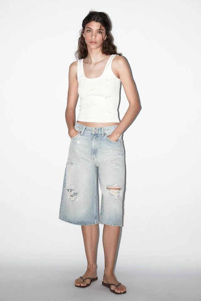 WASHED EFFECT RHINESTONE DETAIL T-SHIRT