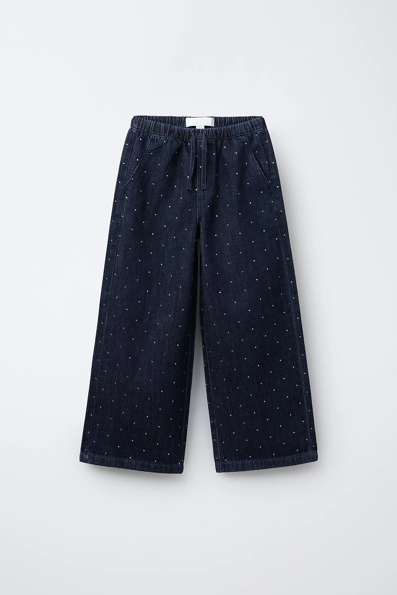 RHINESTONE WIDE LEG JEANS