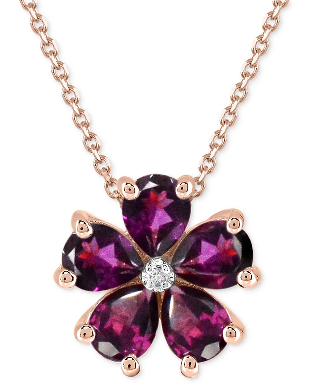 Rhodolite (3-1/2 ct. t.w.) & Diamond Accent Flower 18" Pendant Necklace in 14k Rose Gold-Plated Sterling Silver