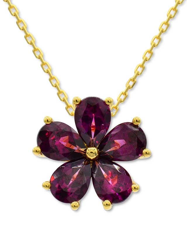Rhodolite Garnet Flower 18" Pendant Necklace (3-3/4 ct. t.w.) in 14k Gold-Plated Sterling Silver
