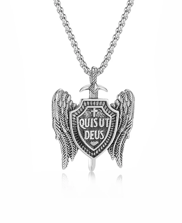 Rhona Sutton Silver Quis Ut Deus Stainless Steel Pendant Necklace