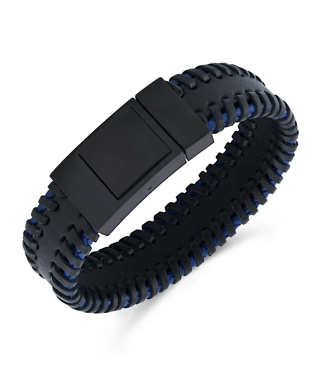 Rhona Sutton Stainless Steel Stylish Black and Blue Chunky Leather Bracelet