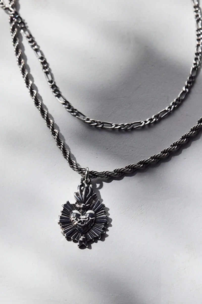 An easy pendant layering necklace set featuring two chunky chain necklaces with an antiqued silver finish. Designed to wear together or solo, each piece secures with a classic lobster closure for everyday styling.