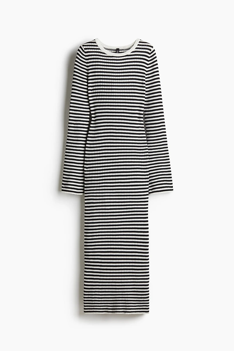Fitted, calf-length dress in a fine rib knit. Round neckline with narrow ribbing, long sleeves, and a straight hem.