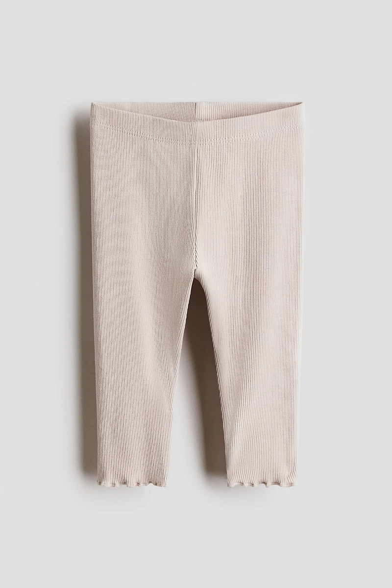 Leggings in soft, ribbed cotton jersey with an elasticized waistband. Overlocked trim at hems.