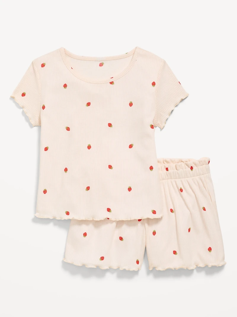 Ribbed Lettuce-Edge Pajama Top and Shorts Set for Girls in Bloomington, MN