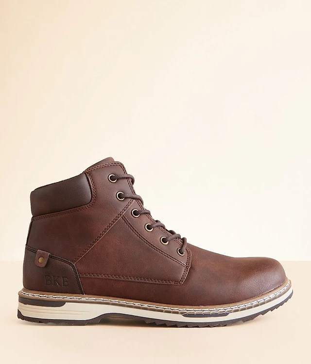 Faux leather lace-up boot Side zip detail Cushioned footbed 5" shaft