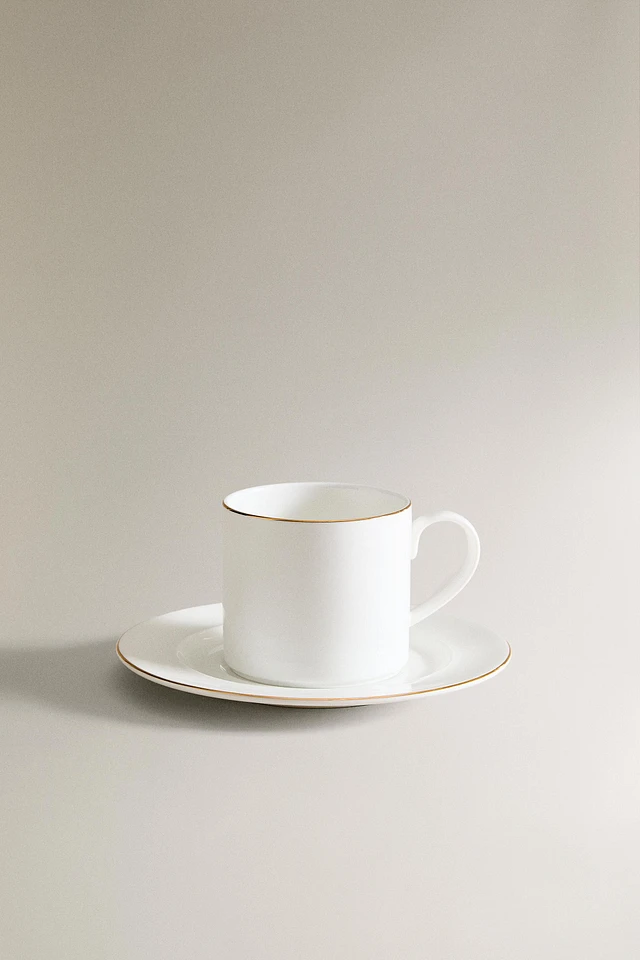 RIMMED BONE CHINA TEACUP AND SAUCER