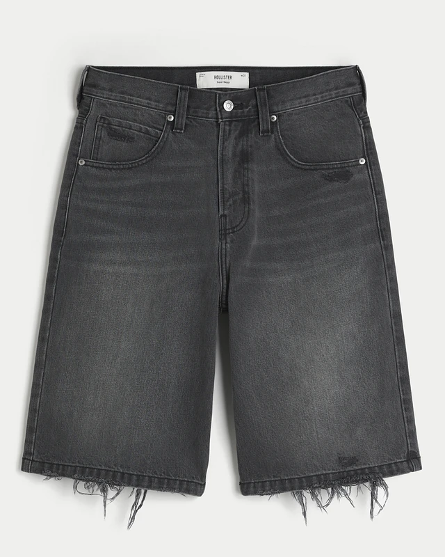 Low-Rise Washed Black Baggy Denim Shorts 5"