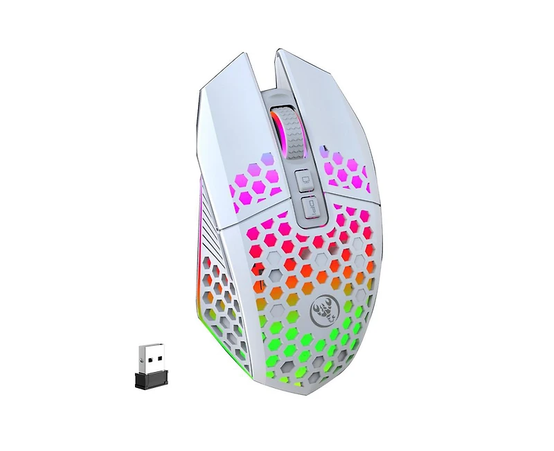 The 2.4G Wireless Rechargeable Gaming Mouse, featuring a honeycomb hollow design that balances lightweight comfort with high-performance functionality. Its ventilated honeycomb shell keeps your hand cool and reduces fatigue during marathon gaming sessions or all-day work, while the silent click design ensures you won t disturb others.Equipped with 3-speed adjustable Dpi (800/1200/1600). The vibrant Rgb backlight cycles through dynamic colors, adding a stylish touch to your setup, and the 2.4G wireless connection provides a stable, lag-free signal up to 10 meters.Powered by a 500mAh rechargeable battery, it supports Type-c fast charging (1–2 hours full charge) and features a 3-level auto-sleep mode to conserve power: lights flash continuously after 3 seconds, intermittently after 1 minute, and turn off after 8 minutes of inactivity. Compatible with Windows, macOS, and Linux, it s a reliable tool for gamers, office workers, and students alike.