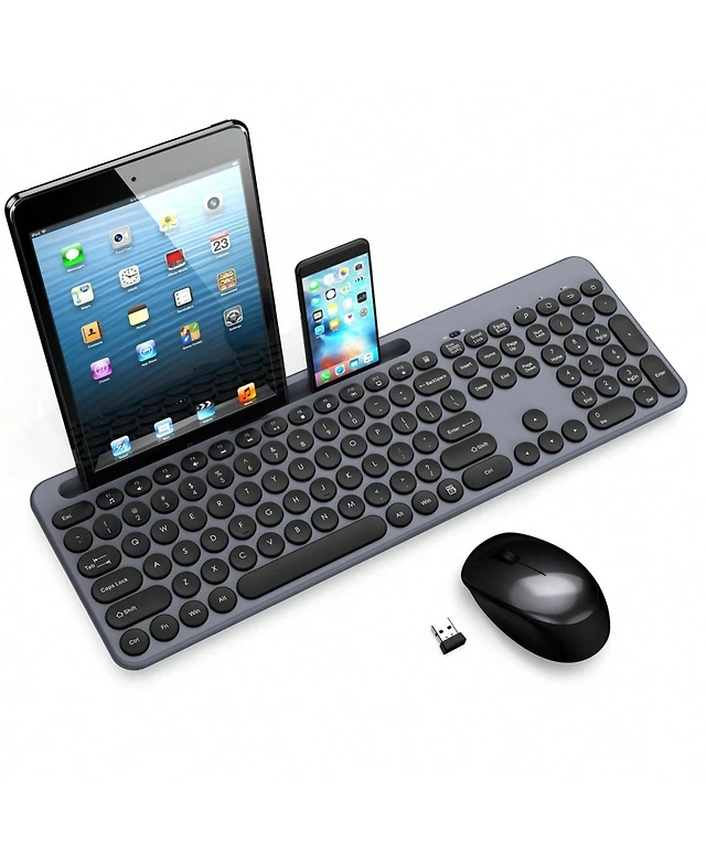 risokeys Wireless Keyboard and Mouse Combo - Round Keycaps, 2.4GHz Full-Size Keyboard with Detachable Wrist Rest, Sleep Mode Tilt, Pc