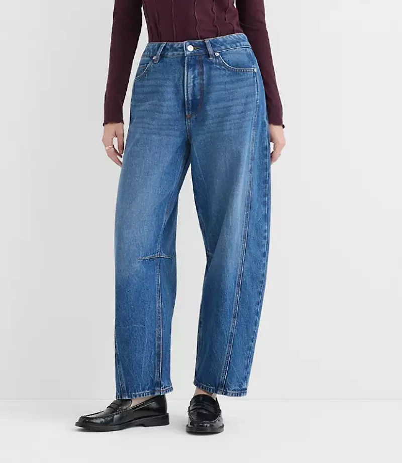 There's a new jean in town. And there's nothing cooler than being the first to make them your own. We believe the best jeans make the outfit. These are the ones. Effortlessly cool Uniquely versatile And totally worthy of that"I told you so"attitude. We knew you'd know a good thing., Pants Details: Front zip with button closure. Belt loops Five pocket styling., Leg Shape: Barrel - an ankle length silhouette with a curved leg that gently tapers at leg opening, Rise: Sits at natural waist, 12 1/4"rise, Imported:, Fit: Relaxed and easy, Length: Ankle length, 28"inseam, Fabrication: 100% Cotton, Garment Care: Machine Washable Loft Rivete Seamed High Rise Barrel Jeans in Authentic Dark Wash Size 24 Women's by Loft Size Regular - 24 Authentic Dark Wash Women's Regular, Dark Barrel Pants 100% Cotton Machine Washable