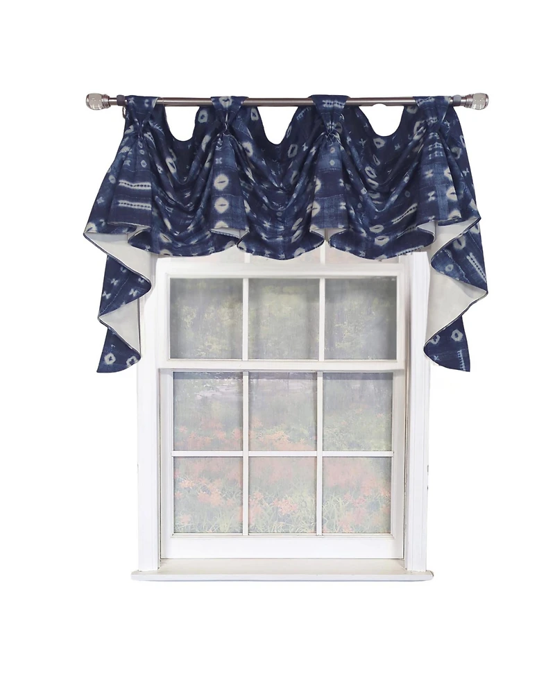 Elevate your decor with the Rlf Home Pulsar 3-s Victory Swag in a rich Navy color, crafted to add classic charm and layered texture to windows in traditional and contemporary interiors. Made from 100% cotton, this unlined swag features a three-scoop victory design for a structured yet soft drape. Measuring 54" wide x 25" length, it fits windows up to 54 inches wide and can be combined with additional swags for larger coverage. The breathable cotton fabric allows sunlight to filter through gently, maintaining a bright and inviting room. Finished with a tab top, it installs easily on tension rods or decorative poles up to 2 inches in diameter, combining ease of use with refined decorative appeal.