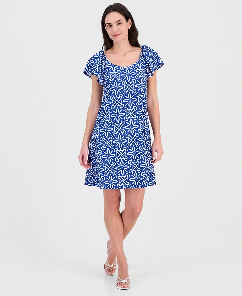 Effortlessly breezy and chic, this printed A-line dress from Robbie Bee can be worn on or off the shoulder depending on the occasion.