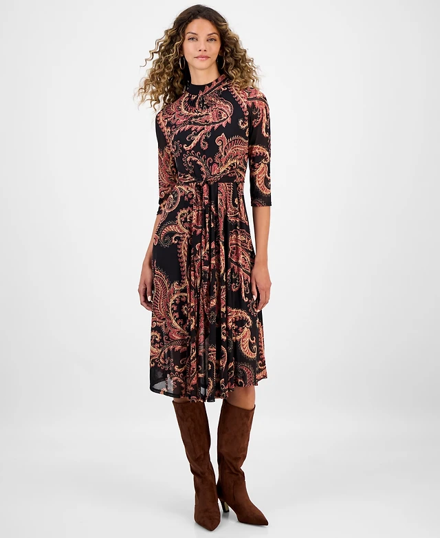 Robbie Bee Women's Printed Mock Neck Midi Dress