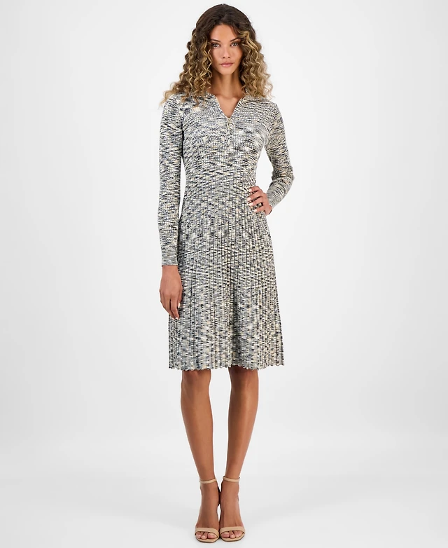 Robbie Bee Women's Spread-Collar Long-Sleeve Dress