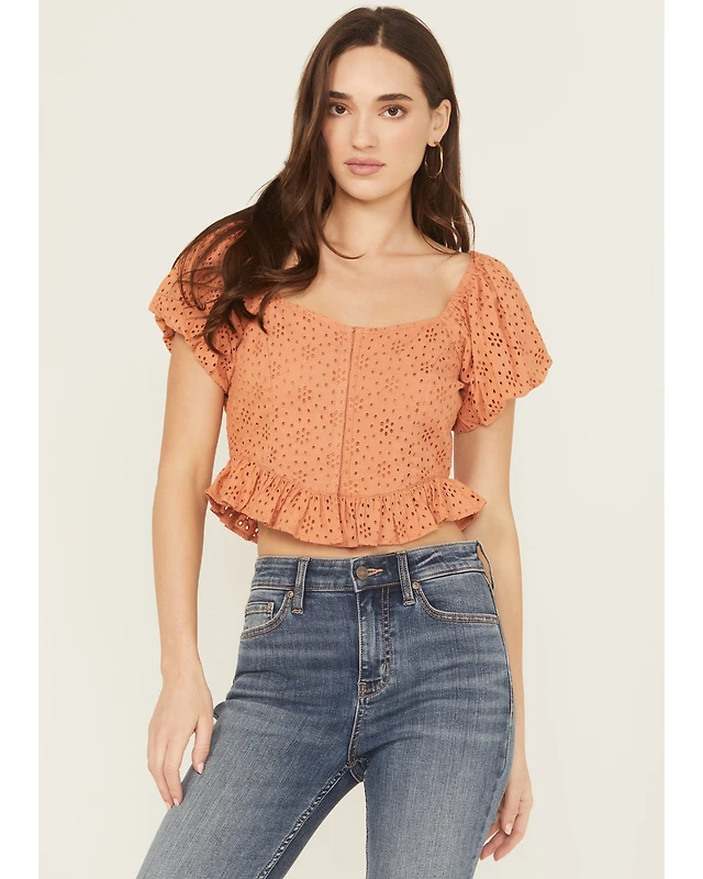 Rock & Roll Denim Eyelet Puff Sleeve Shirt
