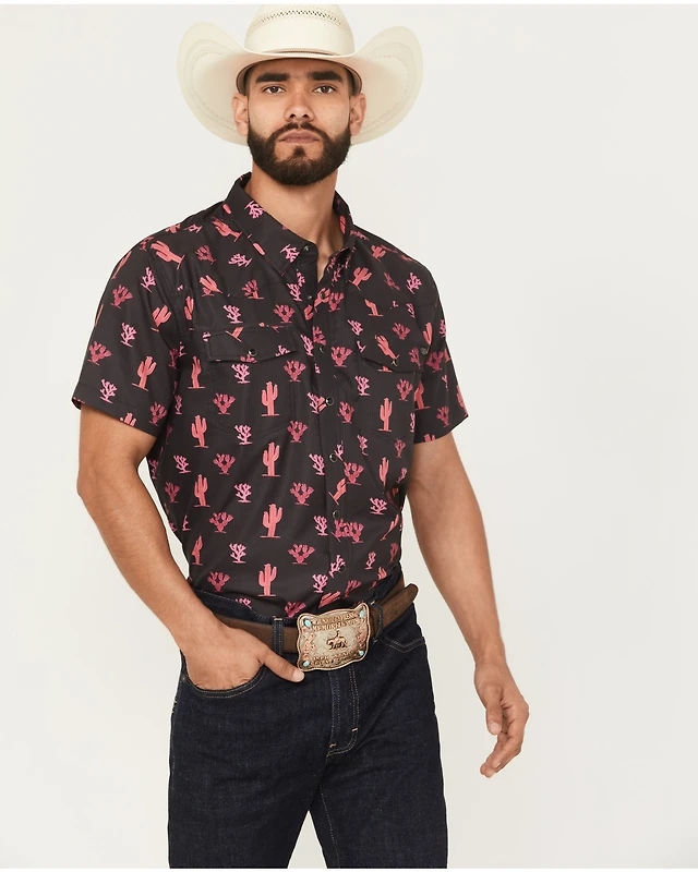 Rock & Roll Denim Men's Cactus Print Stretch Short Sleeve Snap Western Shirt