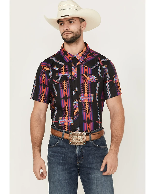 Rock & Roll Denim Men's Tek Southwestern Print Short Sleeve Snap Western Shirt