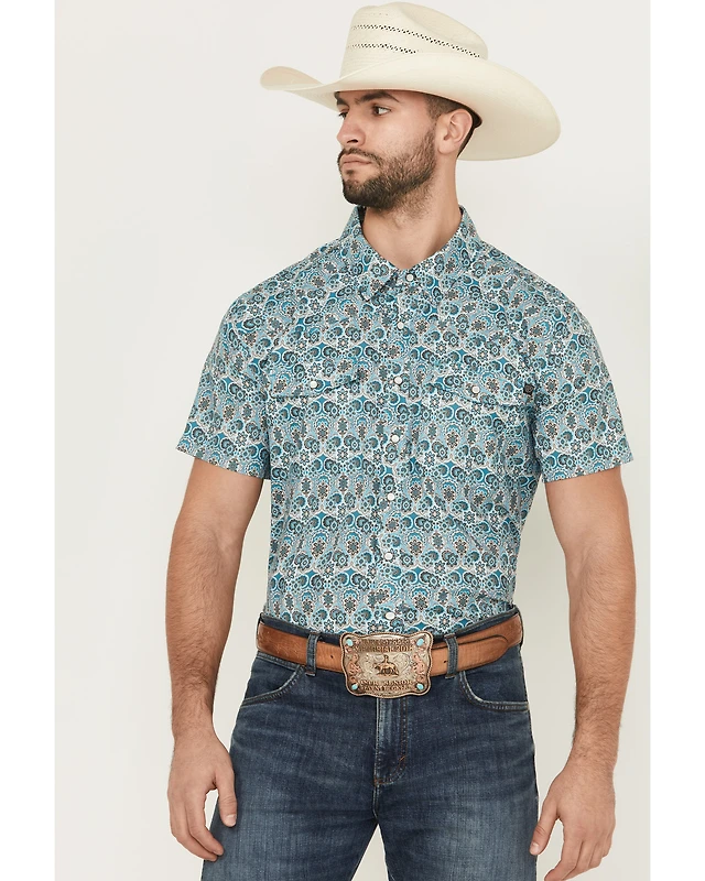 Rock & Roll Denim Men's Geo Floral Print Short Sleeve Pearl Snap Western Shirt