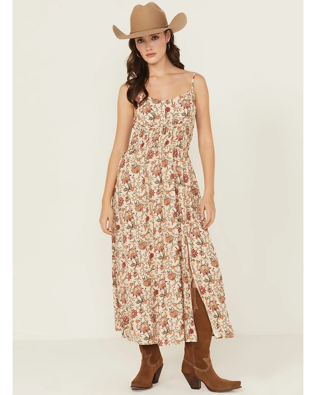 Rock & Roll Denim Women's Floral Print Sleeveless Midi Dress