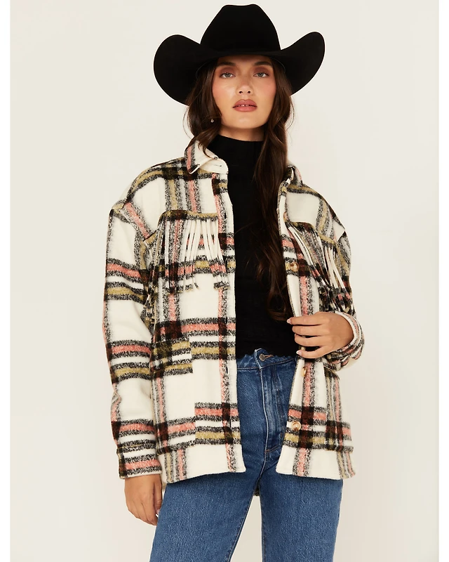Rock & Roll Denim Women's Plaid Print Fringe Shacket