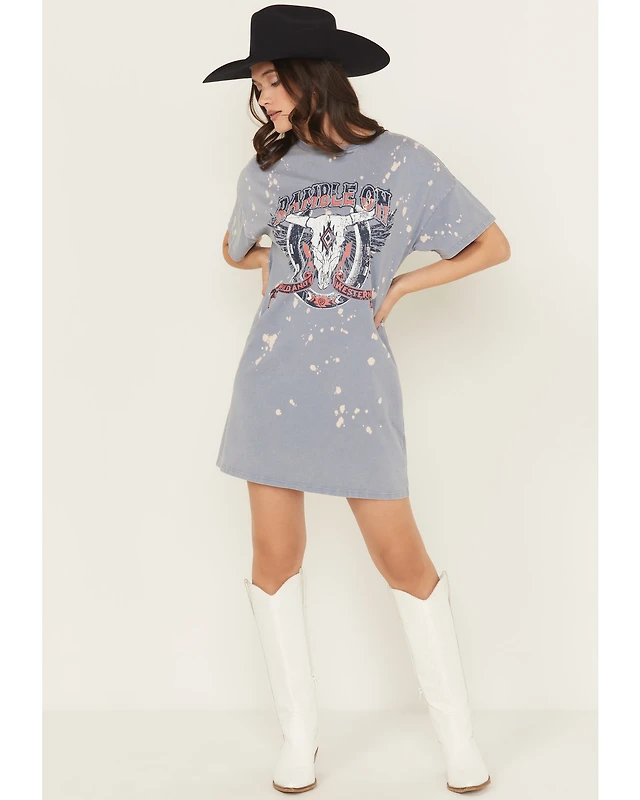 Rock & Roll Denim Women's Ramble On Short Sleeve Mini T-Shirt Dress