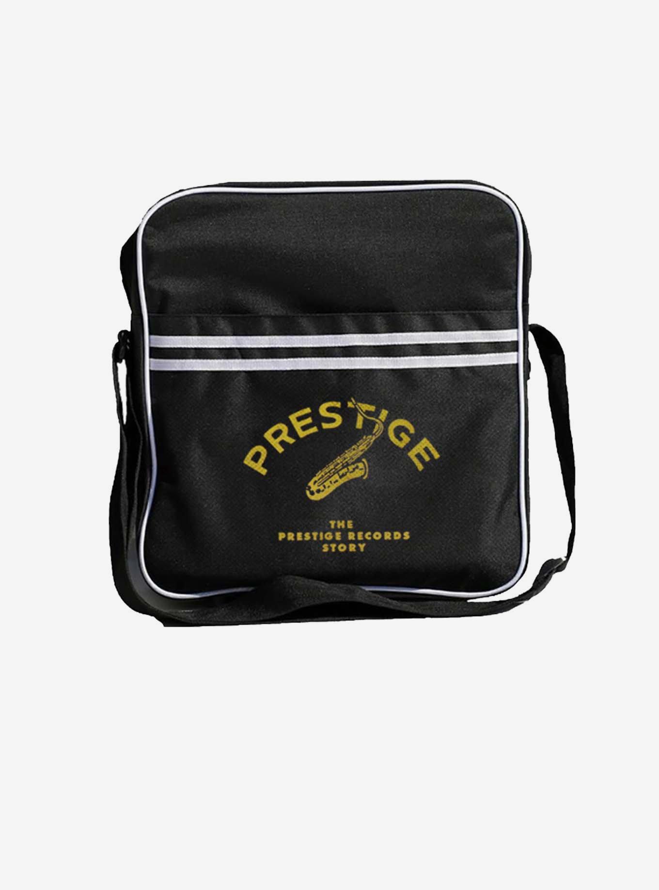 This Prestige Records zip top messenger bag can hold 35, 12-inch records and features an outer pouch pocket, and is individually lined. Load up the spacious main compartment and adjust the strap to carry your daily essentials in comfort. Item cannot be shipped to P.O. Boxes