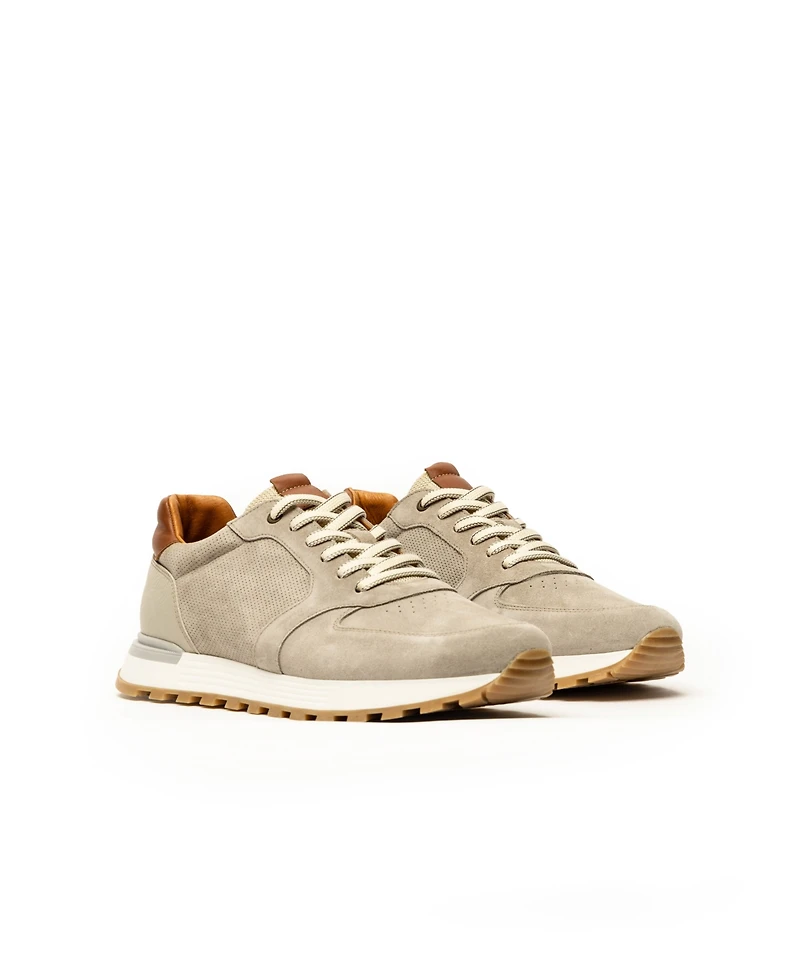 Crafted in Portugal, the Peria Sneaker is a refined retro design with a multimedia leather and/or suede upper and old school trainer unit with heel stabilizer detail. The leather covered molded footbed is removeable for convenience. The Outsole is rubber, and the upper is partially leather lined, partially unlined for softness. The Peria is perfectly paired with denim, pants or shorts.