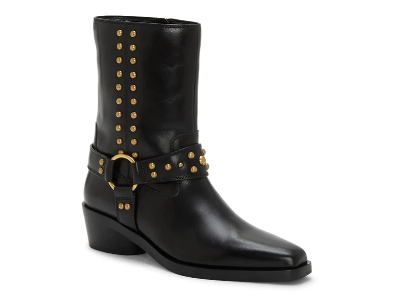 Discover the Vince Camuto Roista bootie, a stylish boot that catches the eye. Studded metallic touches and a biker-like silhouette, this pair is sure to edge up your fave look.