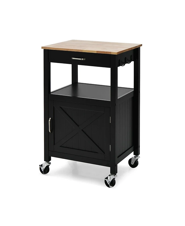 Modern Rolling Kitchen Cart Island with Wood Counter Top