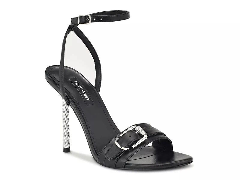 Become a visual treat in the Nine West Rommie sandal. A two-piece sleek design, belt buckle, almond open toe, and textured heel make this adjustable sandal impressive.
