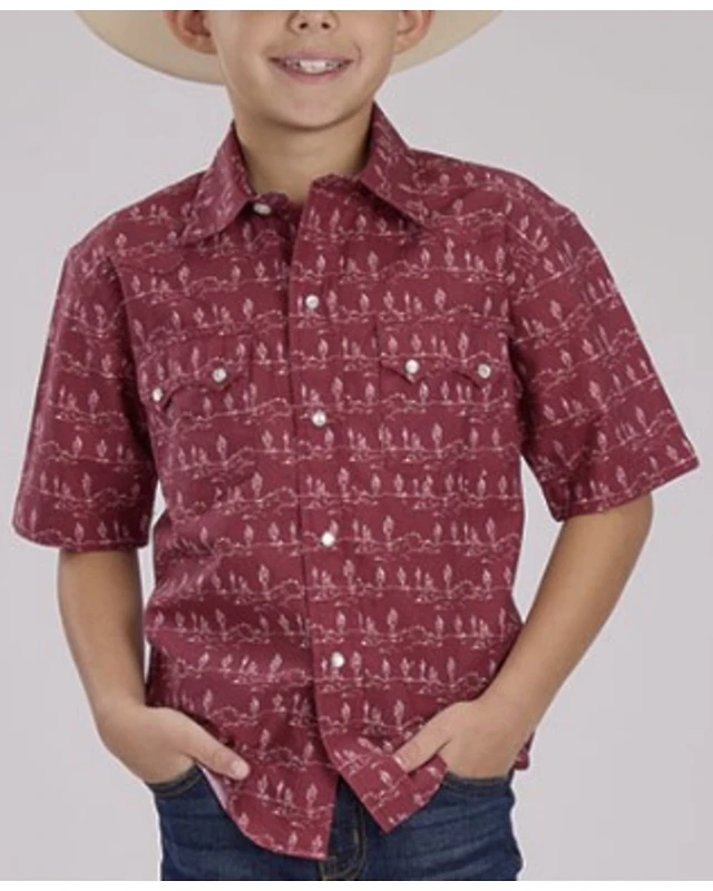 Roper Boys' Desert Print Short Sleeve Pearl Snap Western Shirt
